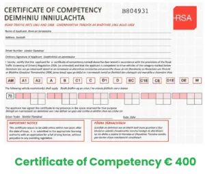 Description:A Certificate of Competency in Ireland is a legal document given to a learner driver after they pass the driving test. It shows that the person has the skills and knowledge needed to drive safely and well on public roads. When you apply for a full driving licence, you need this certificate. Once it is issued, it is good for two years. During that time, the driver must apply for their full licence, or they will have to take the driving test again.