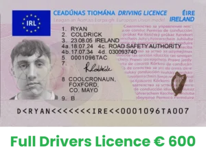 How to apply for full driving licence : You can apply buy a full Irish driver’s license directly from us by clicking the button below. The applicant must complete an application form that requests for personal information like the driver’s name, photo, birthdate, and the types of vehicles they are authorised to drive, among other things. Any endorsements, limitations (such as the requirement to wear glasses), and penalty points are also noted in the licence.
